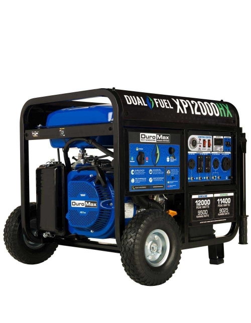 - DuroMax Generator Dual Fuel Gas Propane Portable with CO Alert 12,000 Watt