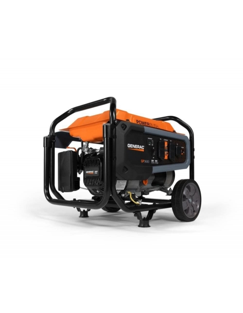 The 3600 Watt Generac GP3600 portable generator can be used to tackle home projects, provide power for tools, or deliver essential electricity in the case of an outage. It is an especially affordable solution with premium features. These include PowerRush advanced technology - delivering over 40% more starting capacity -an OHV engine for longer engine life and a large-capacity steel fuel tank with an incorporated fuel gauge for durability. The hardened steel tube cradle provides added strength, while the low-oil level shutdown protects your engine from damage. Heavy-duty, never-flat wheels and a towable handle make for easy transportation of the generator. The compact size of the GP3600 ensures it will take up minimal storage space in the garage.