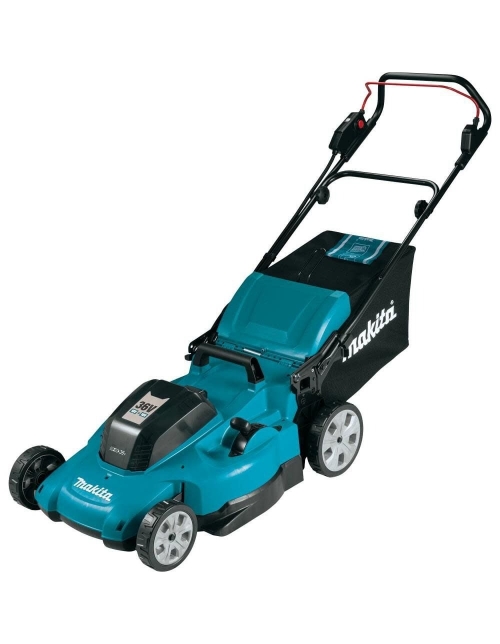 The Makita LXT 36 Volts 21 Inch lawn mower kit is built with high torque motor which offers faster and premium cut quality at 3000 RPM. Designed with sturdy plastic deck, this product is easy to move around. It features IPX4 weather-resistant construction that assures long lasting life. It has 3-in-1 design, making it best choice for mulching, bagging or rear discharge applications. Built with height adjusting lever and gripped tires, this product is suitable for use even in rough and uneven terrain. It does not give out any kinds of harmful emissions or gases and does not even require oil mixing or pull starting. The Extreme Protection Technology (XPT™) safeguards the motor and bearings from dust, debris and water and ensures long lasting usage. This lawn mower tool has an added catcher bag that accommodates up to 2 bushels of grass. Features Star Protection Computer Controls which safeguards from excess loading and discharging as well as over-heating. Once charged, it can be continuously used for up to 40 minutes. Includes an upright storage, foldable handle and a rubberized soft grip handle bar for user convenience. This product comes with four each 18 Volts LXT 4.0 Ah battery and a dual port charger. The tool, battery and charger has limited warranty of 3 years.