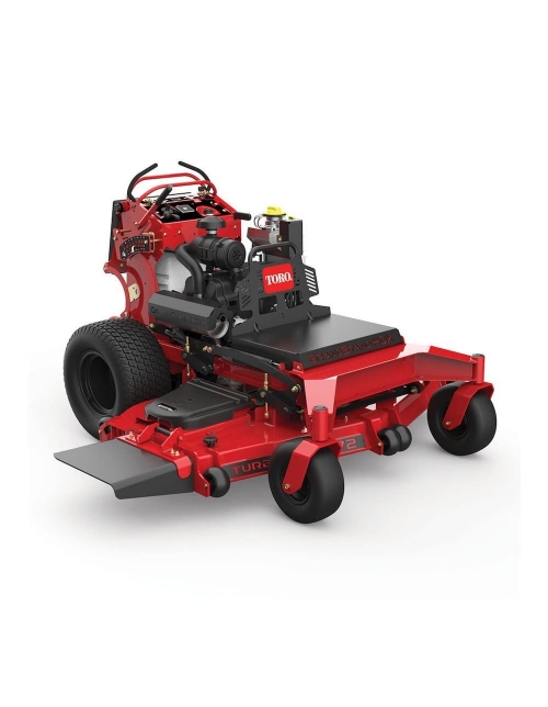 The Toro GrandStand combines the speed and comfort of a zero-turn rider with the on-and-off ease of a wide area walk-behind creating a fast, maneuverable and more productive alternative. The HDX model provides increased efficiency with higher horsepower. Bumpy patches and challenging terrain are all in a day's work- but feeling them doesn't need to be. GrandStand combines the speed and comfort of a zero-turn rider with the on-and-off ease of a walk-behind for speed and maneuverability. Improve productivity with easy access on and off the machine-up to 10.5 gallons of fuel capacity on 48 In., 52 In., 60 In. and 72 In. models-to mow longer with fewer stops. Save maintenance and time with no hydraulic hoses, no daily/weekly grease points and a new engine design that allows extra room for service access. The fuel tank can also be removed without draining for easy service access to the transmission and controls.