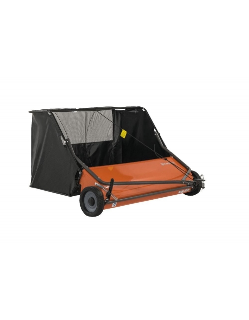 Clean-up efficiently with this 52-in sweeper. The 26 cu. ft. reinforced hopper with a flow-thru bag fills from top to bottom for superior collection, which means less stopping to dump the leaves. You’ll get a clean sweep with one pass thanks to the 5:1 brush-to-wheel ratio. The height adjustment locks so it won’t vibrate out of position, with easy-to-remember settings. An extra-wide 9-in chute prevents frustrating clogs and can be conveniently dumped from the tractor’s seat. Includes collapsible hitch, hitch arms, and a bag for compact storage.