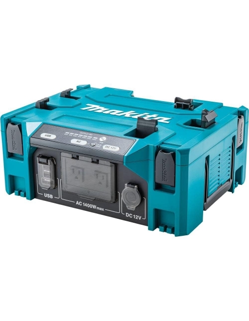 The 40V max ConnectX Portable Power Station (BAC01) turns DC power into AC power and is suitable for a wide range of applications. It is powered by the ConnectX Portable Backpack Power Supply (PDC1200, sold separately) or the 18V LXT® and LXT X2 Portable Backpack Power Supply (PDC01, sold separately). The BAC01 is transportable power with 2800W peak / 1400W continuous output. It features multiple outlets including 2 AC outlets, 2 Type-A USB output ports, two Type-C USB outlet ports and one DC12V car outlet. The BAC01 is suitable for battery charging or for the use of corded tools in outdoor job sites where an AC outlet is not available and can charge up to 7 BL4040 using the PDC1200 battery. It features double insulation to help maintain the proper temperature environment inside the Power Station. The Portable Power Station is equipped with three forms of protection including: overload protection, overheat protection, and over discharge protection. The BAC01 features a seven-stage output indicator lamps light up according to the wattage being output. There is also a warning buzzer to alert users when the converter stops supplying power due to overload, high temperature, or low battery capacity.