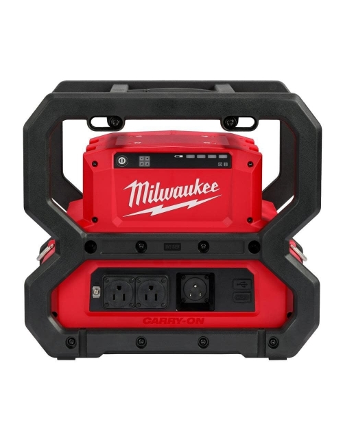 The Milwaukee M18 CARRY-ON power supply delivers 3600 W starting, 1800 W running of pure sine wave inverter energy with longer sustained power. It is emission free and eliminate the cost of gasoline, repairs and maintenance required with any gas generator. it keeps noise level to as low as 66 dB, thereby ensuring quite operation. This supply can be used to run demanding tools like table saws, compressors as well as pipe theaters and can also be used to recharge sensitive electronics with a pure sine wave inverter with USB-C PD & USB-A. It can be used to power all 15 A tools and the instant start technology makes it the better-sustained power. The compact design of this power supply makes it perfect to operate indoors and underground. It fits all M18 batteries and is compatible with 49-16-2845 shoulder strap. The USB-C PD and USB-A port charges all your sensitive electronics faster.
