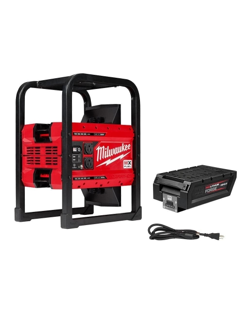 The MILWAUKEE MX FUEL CARRY-ON 3600W/1800W Power Supply provides the best temporary power for the job. You can power more on-demand with efficient, quiet, and portable power anywhere. The portable power supply offers 3600 peak watts, and 1800 continuous watts of pure sine inverter energy, powering everything from your high demand 15A tools to sensitive electronics. The compact size, no emissions, and quiet operation of the power supply unit allow you to use it safely in confined spaces indoors. The metal roll cage provides you with durability for outdoor jobsite use. The battery-powered generator eliminates the cost of gasoline and doesn’t require engine repair or maintenance, reducing your downtime and allowing you to get jobs done faster. The cordless generator can be powered by a single battery for lightweight portability or two batteries for double the run time. The MX FUEL REDLITHIUM FORGE HD12.0 battery pack delivers up to 2x more runtime, has COOL-CYCLE capability for high-speed cooling while charging, and the longest life versus REDLITHIUM batteries. REDLITHIUM FORGE is Milwaukee's most powerful, fastest charging, and longest-life battery. With 2X more runtime vs MX FUEL REDLITHIUM XC406 (XC6.0), this battery delivers more work per charge allowing you to run your equipment longer and keep up with high-demand applications.