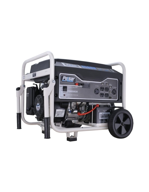 Pulsar’s PG6580E gas-powered generator is a rugged and reliable portable power source that you can count on when you need it most. The single cylinder, OHV engine produces an impressive 6580W peak power for running appliances, tools, and more. Convenient drop-down handles and sturdy never-flat wheels provide added mobility and easy storage. Whether you’re caught in power-outage or in need of a portable energy supply while away from home, the PG6580E is certainly a fantastic choice. Strong 274 cc, 8HP engine protected by a durable powder coated frame. Electric push start with battery. Recoil start backup. 5.2 Gallon fuel tank. 11 Hr Run-time at half load (on single tank of fuel). (4) 5-20R 120V 20A duplex outlets, (1) L5-30R 120V 30A twist-lock outlet, (1) L14-30R 120V/240V 30A twist-lock outlet. Dual drop-down handles and never-flat wheels make mobility a breeze. Automatic voltage regulator. Digital voltage meter. Includes: spark plug wrench and battery. EPA Approved.