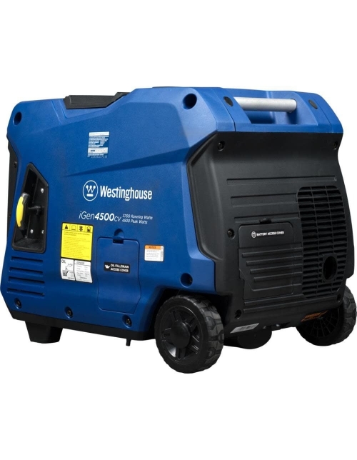 The Westinghouse iGen4500cv Inverter Generator is a premium power solution to meet your portable power needs whether you're camping or on the go. With a TT-30R RV Ready Outlet, two 20A household outlets, and built-in USB ports, this generator is ideal for recreational activities or as an emergency backup power source. It's engineered for maximum fuel efficiency with a variable engine speed to produce only the power you need at any given time, running for up to 18 hours on a 3.4-gallon fuel tank to save you repeated trips to the gas station. At less than 3% THD, the iGen4500cv is perfect for running sensitive electronics like LCD/plasma televisions, laptops, tablets, or mobile devices that require clean, stable power. The LED Data Center has an automatic rotating digital display to keep you up to date for maintenance with real-time information. It features a lightweight, compact design with wheels and an extendable suitcase-style handle, making this model effortlessly more portable than traditional generators. The iGen4500cv features automatic low oil and carbon monoxide (CO) shutdown, voltage regulation, and overload protection, complete with a 3-year limited warranty and Lifetime Technical Support, backed by our nationwide Westinghouse service network.